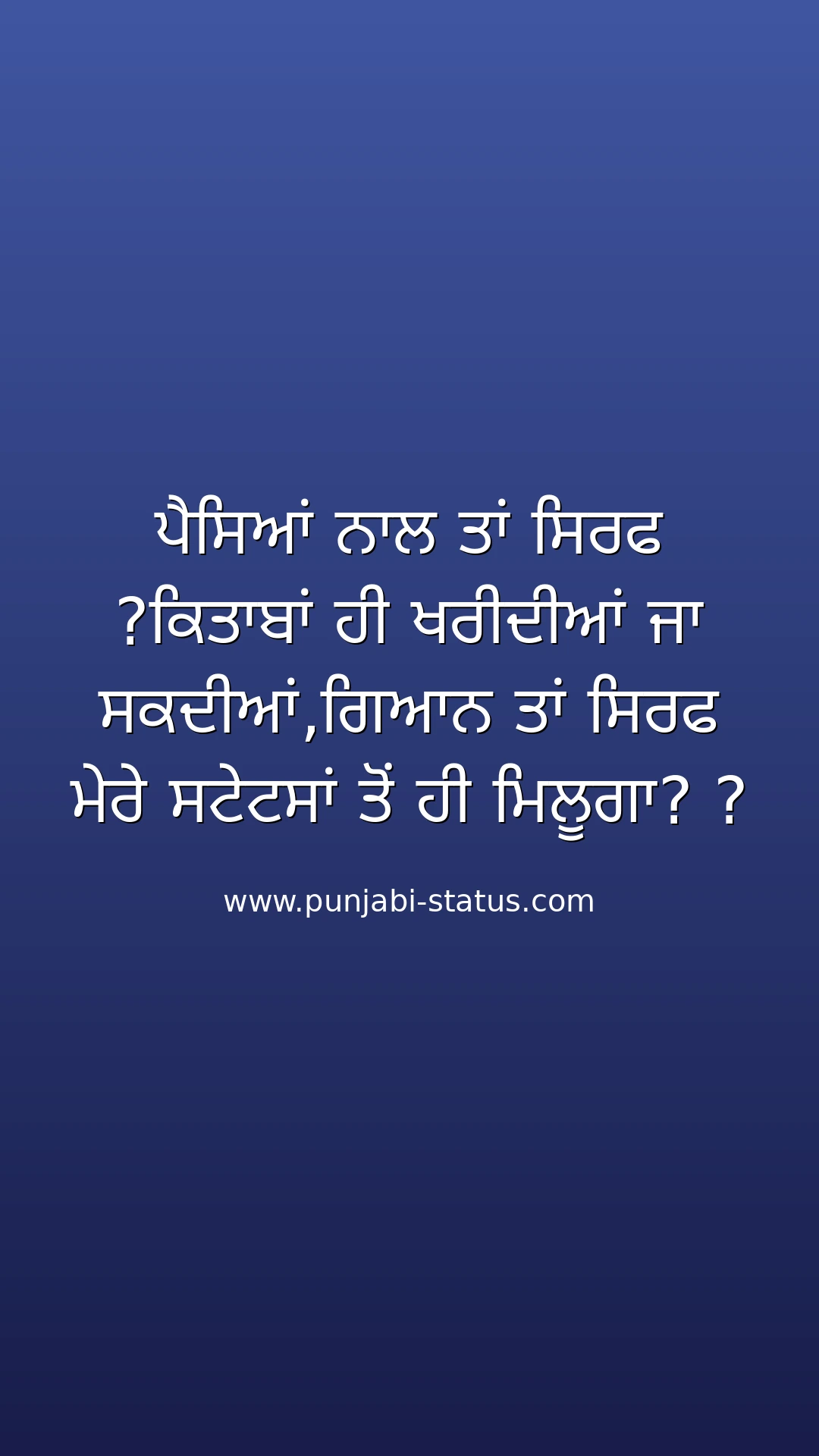ਪੈਸਿਆਂ ਨਾਲ ਤਾਂ ਸਿਰਫ ?ਕਿਤਾਬਾਂ ਹੀ ਖਰੀਦੀਆਂ ਜਾ ਸਕਦੀਆਂ,ਗਿਆਨ ਤਾਂ ਸਿਰਫ ਮੇਰੇ ਸਟੇਟਸਾਂ ਤੋਂ ਹੀ ਮਿਲੂਗਾ? ?
