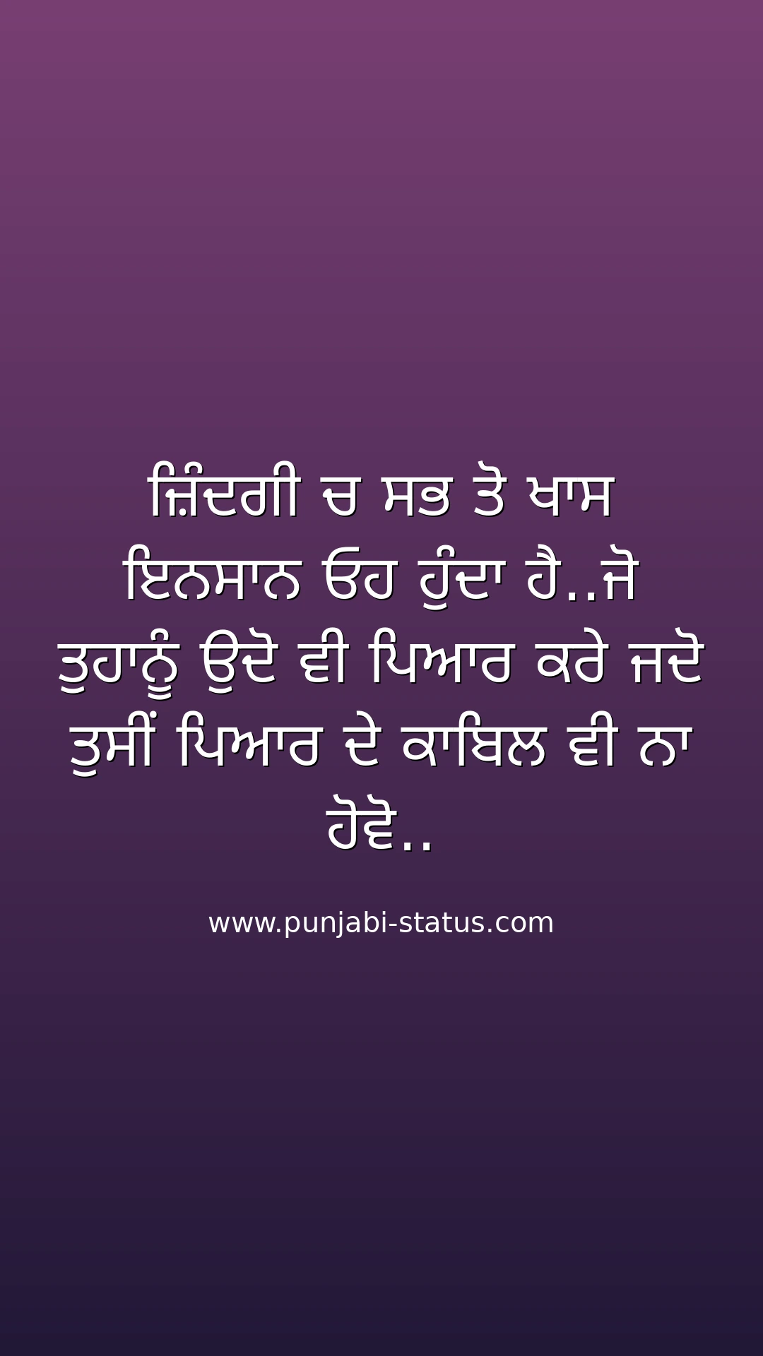 ਜ਼ਿੰਦਗੀ ਚ ਸਭ ਤੋ ਖਾਸ ਇਨਸਾਨ ਓਹ ਹੁੰਦਾ ਹੈ..ਜੋ ਤੁਹਾਨੂੰ ਉਦੋ ਵੀ ਪਿਆਰ ਕਰੇ ਜਦੋ ਤੁਸੀਂ ਪਿਆਰ ਦੇ ਕਾਬਿਲ ਵੀ ਨਾ ਹੋਵੋ..