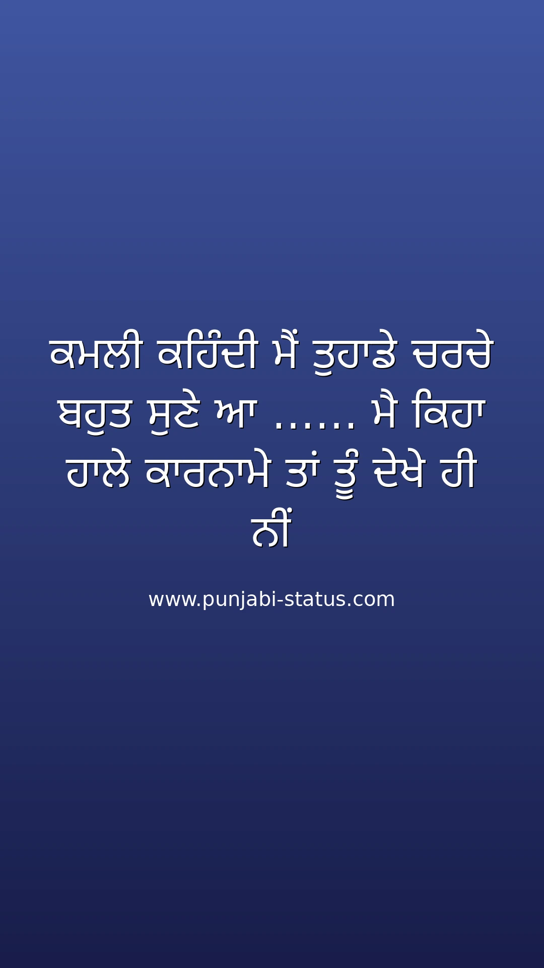 ਕਮਲੀ ਕਹਿੰਦੀ ਮੈਂ ਤੁਹਾਡੇ ਚਰਚੇ ਬਹੁਤ ਸੁਣੇ ਆ …… ਮੈ ਕਿਹਾ ਹਾਲੇ ਕਾਰਨਾਮੇ ਤਾਂ ਤੂੰ ਦੇਖੇ ਹੀ ਨੀਂ