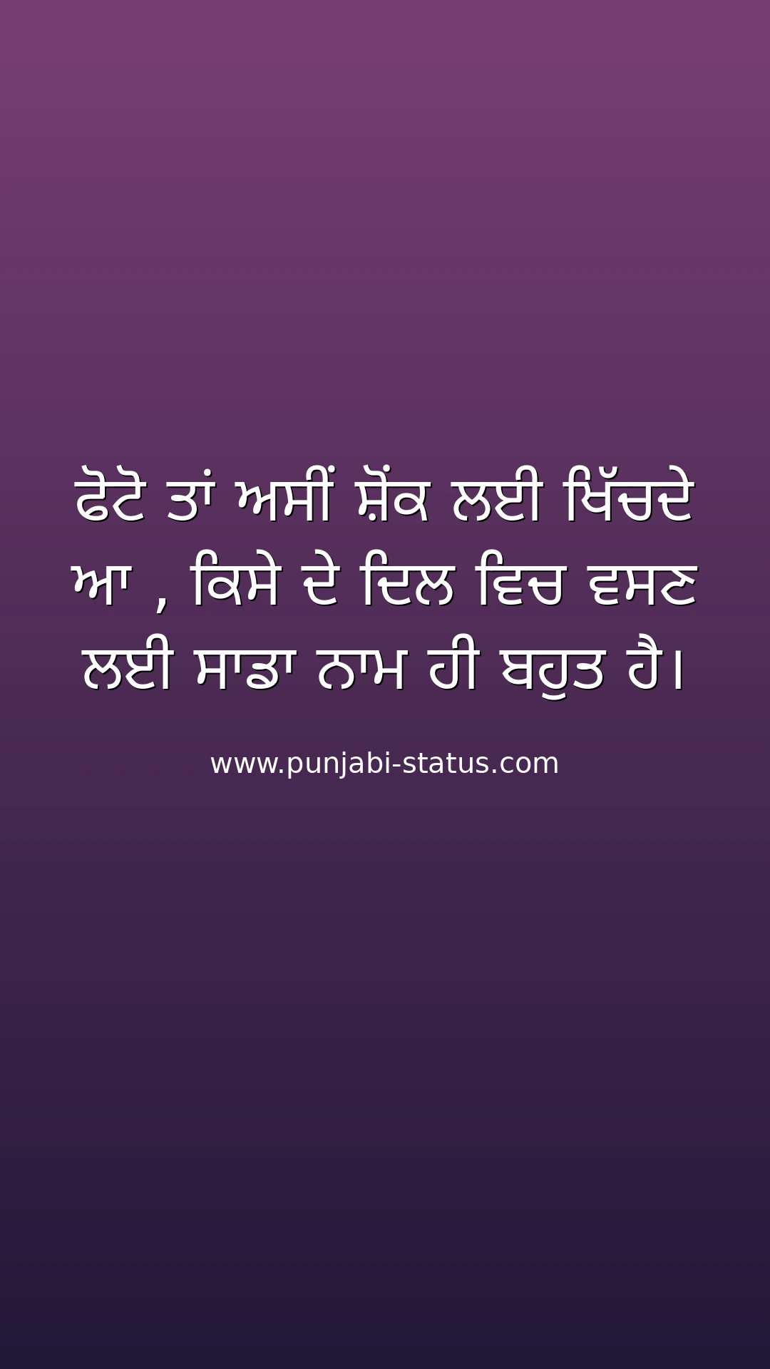 ਫੋਟੋ ਤਾਂ ਅਸੀਂ ਸ਼ੋਂਕ ਲਈ ਖਿੱਚਦੇ ਆ , ਕਿਸੇ ਦੇ ਦਿਲ ਵਿਚ ਵਸਣ ਲਈ ਸਾਡਾ ਨਾਮ ਹੀ ਬਹੁਤ ਹੈ।