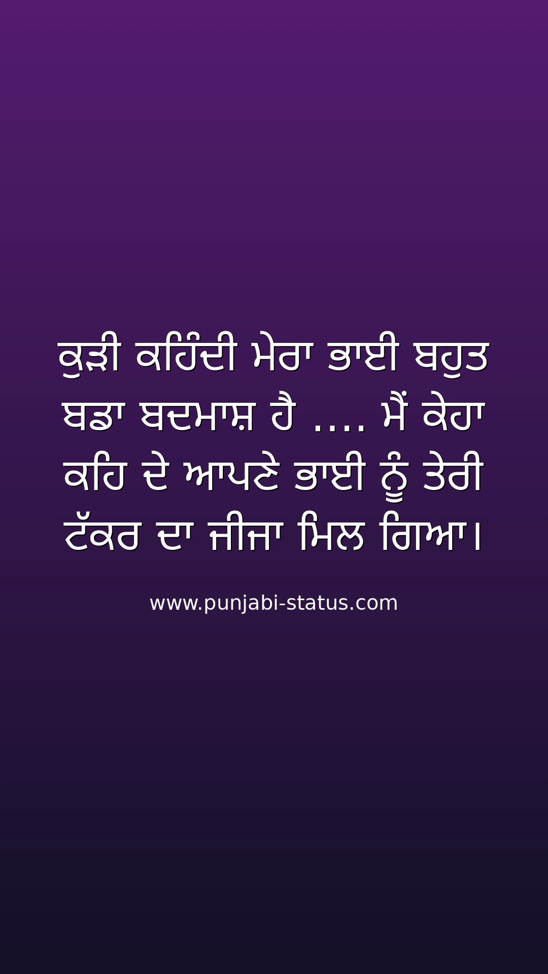 ਕੁੜੀ ਕਹਿੰਦੀ ਮੇਰਾ ਭਾਈ ਬਹੁਤ ਬਡਾ ਬਦਮਾਸ਼ ਹੈ …. ਮੈਂ ਕੇਹਾ ਕਹਿ ਦੇ ਆਪਣੇ ਭਾਈ ਨੂੰ ਤੇਰੀ ਟੱਕਰ ਦਾ ਜੀਜਾ ਮਿਲ ਗਿਆ।
