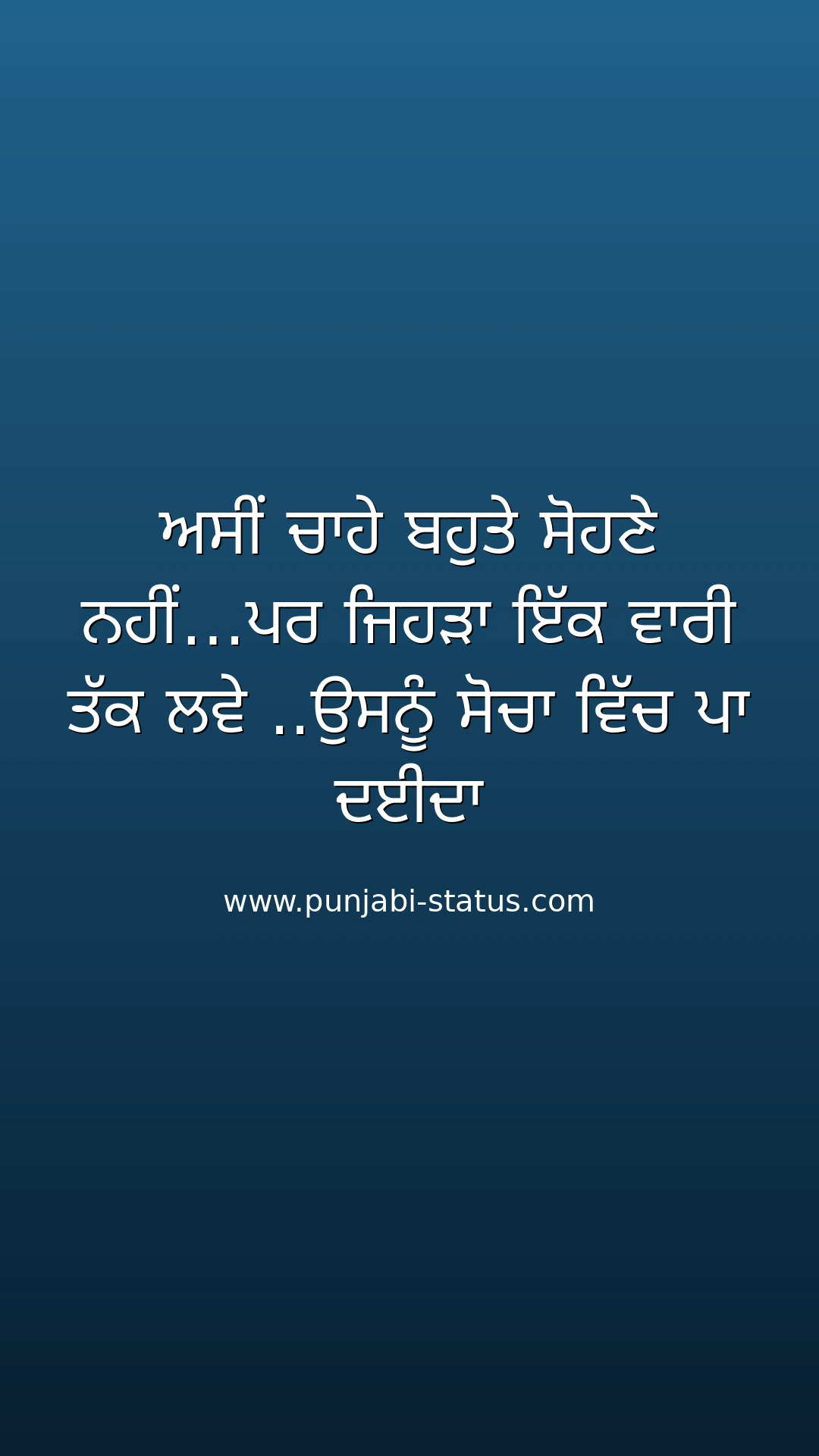 ਅਸੀਂ ਚਾਹੇ ਬਹੁਤੇ ਸੋਹਣੇ ਨਹੀਂ…ਪਰ ਜਿਹੜਾ ਇੱਕ ਵਾਰੀ ਤੱਕ ਲਵੇ ..ਉਸਨੂੰ ਸੋਚਾ ਵਿੱਚ ਪਾ ਦਈਦਾ