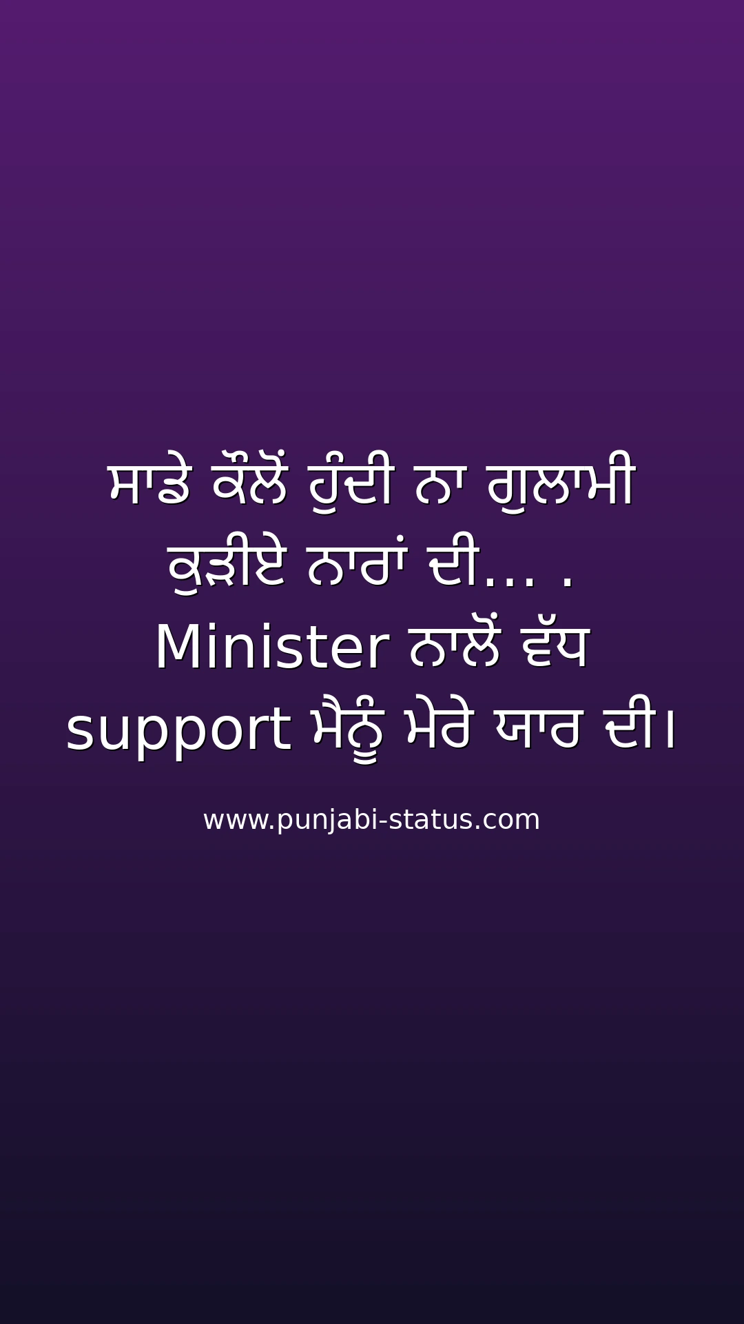 ਸਾਡੇ ਕੌਲੋਂ ਹੁੰਦੀ ਨਾ ਗੁਲਾਮੀ ਕੁੜੀਏ ਨਾਰਾਂ ਦੀ… . Minister ਨਾਲੋਂ ਵੱਧ support ਮੈਨੂੰ ਮੇਰੇ ਯਾਰ ਦੀ।
