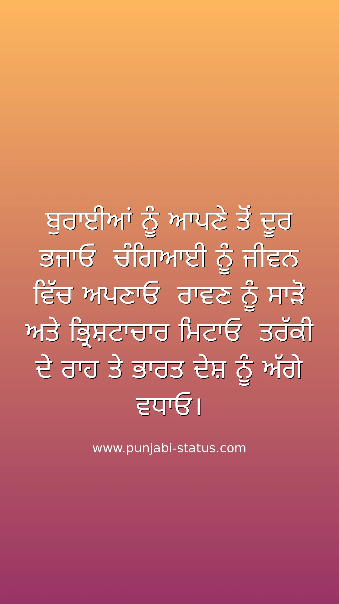 ਬੁਰਾਈਆਂ ਨੂੰ ਆਪਣੇ ਤੋਂ ਦੂਰ ਭਜਾਓ ਚੰਗਿਆਈ ਨੂੰ ਜੀਵਨ ਵਿੱਚ ਅਪਣਾਓ ਰਾਵਣ ਨੂੰ ਸਾੜੋ ਅਤੇ ਭ੍ਰਿਸ਼ਟਾਚਾਰ ਮਿਟਾਓ ਤਰੱਕੀ ਦੇ ਰਾਹ ਤੇ ਭਾਰਤ ਦੇਸ਼ ਨੂੰ ਅੱਗੇ ਵਧਾਓ।
