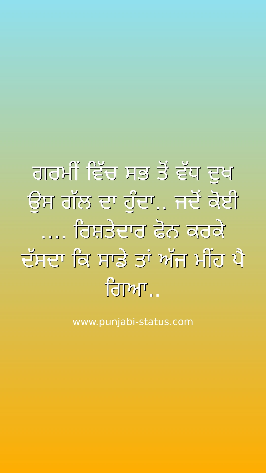 ਗਰਮੀਂ ਵਿੱਚ ਸਭ ਤੋਂ ਵੱਧ ਦੁਖ ਉਸ ਗੱਲ ਦਾ ਹੁੰਦਾ.. ਜਦੋਂ ਕੋਈ .... ਰਿਸ਼ਤੇਦਾਰ ਫੋਨ ਕਰਕੇ ਦੱਸਦਾ ਕਿ ਸਾਡੇ ਤਾਂ ਅੱਜ ਮੀਂਹ ਪੈ ਗਿਆ..