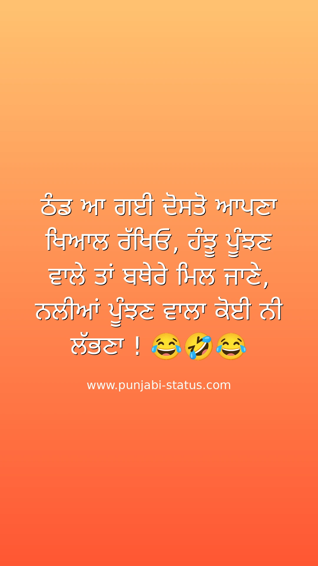 ਠੰਡ ਆ ਗਈ ਦੋਸਤੋ ਆਪਣਾ ਖਿਆਲ ਰੱਖਿਓ, ਹੰਝੂ ਪੂੰਝਣ ਵਾਲੇ ਤਾਂ ਬਥੇਰੇ ਮਿਲ ਜਾਣੇ, ਨਲੀਆਂ ਪੂੰਝਣ ਵਾਲਾ ਕੋਈ ਨੀ ਲੱਭਣਾ ! 😂🤣😂